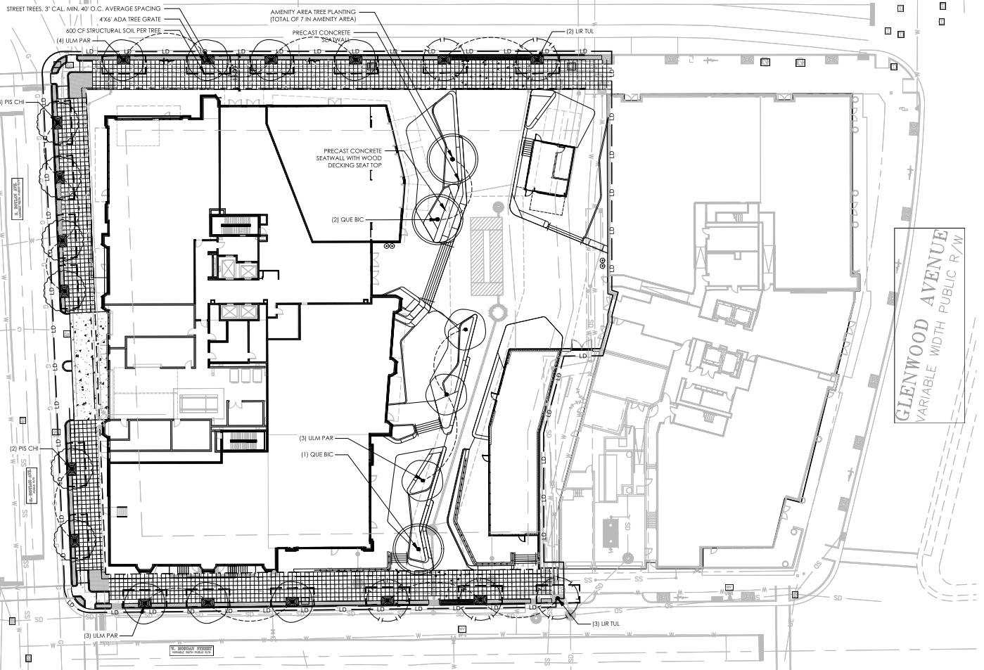 By Bloc 83, I mean the collection of new buildings along Hillsborough and Morgan Streets on the southern end of Glenwood Avenue. The Origin Hotel, One Glenwood, and Two Hillsborough form a node of office space and hospitality that is sure to see some activity as companies move in and programming starts in their new plaza space.